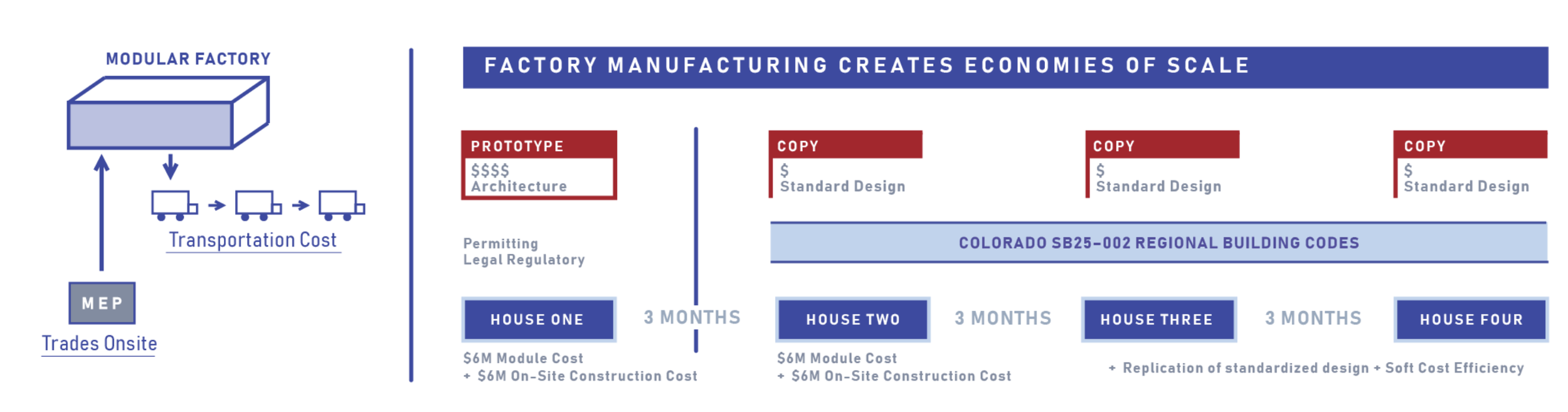 We designed our prototype with modular construction in mind. Repetition of design and process produces savings. We pass through the savings to deepen the levels of affordability while supplying housing more quickly than traditional construction.